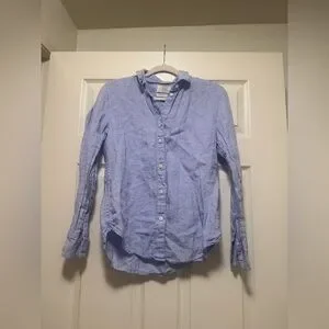 Elegant sky blue linen shirt by J. Crew. Ideal for versatile styling.