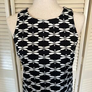 Pappagallo Black & White Geometric Dragonfly Sheath Midi Dress