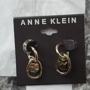 Stylish Anne Klein earrings with gold hoops and black accents. Ideal for versatile wear.
