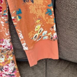 Sundance Coral Floral Crewneck 3/4 Sleeves Waffle Therm Boho Blouse Size Sm LIKE NEW WORN ONCE!! Pit to pit is 18”