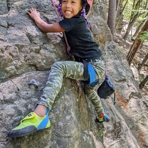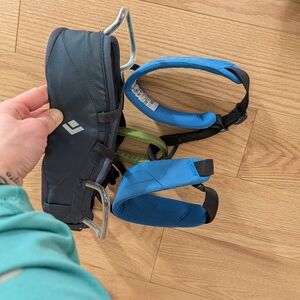 black diamond momentum kids climbing harness like new condition. my daughter enjoyed for a few adventures before outgrowing.