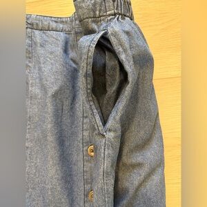 This Vermont Country Store denim skirt is a classic A-Line midi skirt. Made from 100% cotton denim in a solid blue color, it features a button front closure and accents, making it perfect for a variety of occasions including travel, parties, casual outings, and workwear. With an elastic waist for comfort and pockets for convenience, this skirt is a versatile addition to any wardrobe, suitable for all seasons!