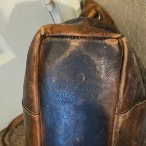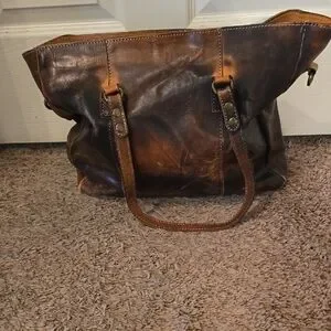 Handcrafted distressed leather tote with a soft, supple feel. Dual shoulder straps with brass-tone hardware. Top zipper closure and spacious interior. Timeless, versatile silhouette for everyday use. This bag is like fine wine it gets better with time. She does have flaws please just look at the pictures for flaws. Make an offer and I'll accept or counter offer.