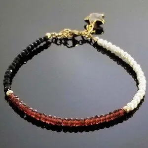 Classic Black Spinel Freshwater Pearl Garnet Gold-filled Bracelet