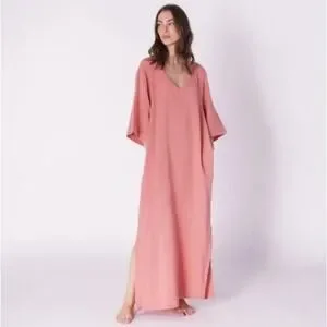 BAREFOOT DREAMS Malibu Sun Soaked Crinkle Cotton Gauze Caftan Maxi Dress {II26}