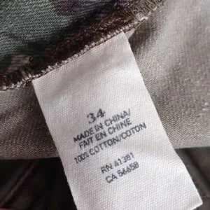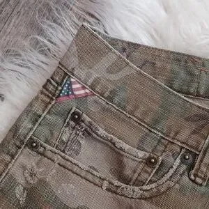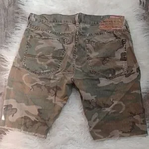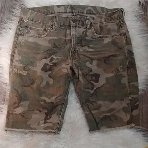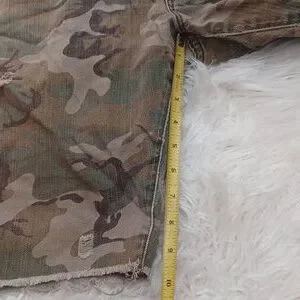 Gently used Distressed camo shorts Size 34 Waist 17" Hips 22" Length 20"
