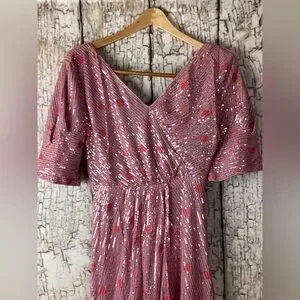 Fairy Faeriesty Glam Pink Sequin Midi Dress Sparkle Luxury Luxe Hearts M
