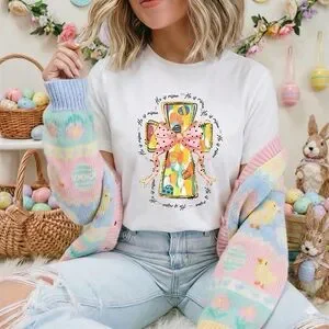 Bring a powerful message of hope and redemption to your apparel line with this stunning, hand-painted style t-