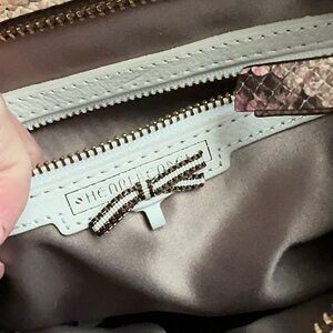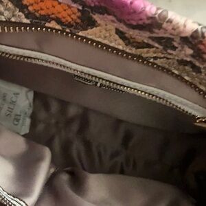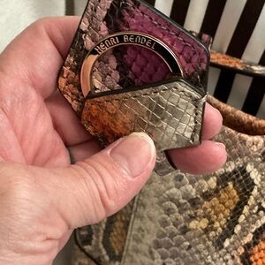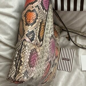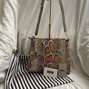 Henri Bendel multicolor snakeskin print handbag. Based on visual matches, this specific design features vibrant pink, orange, and yellow hues on a python-style print and was often sold as a satchel or shoulder bag. Hardware Gold-tone accents, typically featuring a zip-top closure and a hanging logo medallion. NWOTs. Please bid responsibly no cancellations no returns.