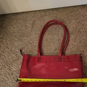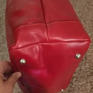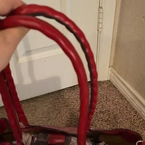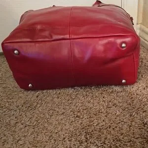 Elegant red leather tote with braided shoulder straps. Smooth leather exterior with subtle stitching details. Open top for easy access. Timeless silhouette suitable for daily use. Please look at the pictures for flaws. Make an offer and I'll accept or counter offer.