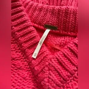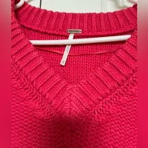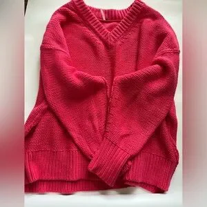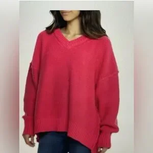 Free People Relaxed V-Neck Sweater in Hot Pink