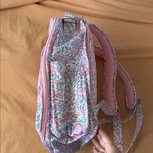 Ergonomic memory foam straps, insulated side pockets. It's the ultimate hands-free backpack for travel, daycare, or park days. Lined in the beautiful coordinating "Sweet Petals" print.