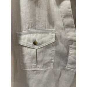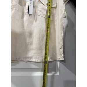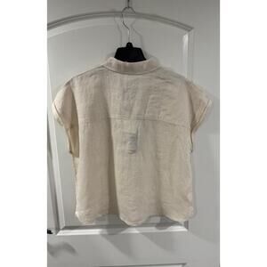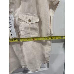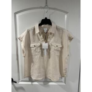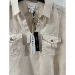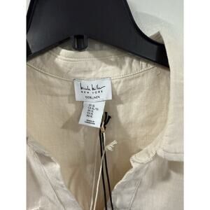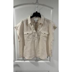 Nicole Miller Linen Top XL Beige Short Sleeve Button Pocket Boho NWT