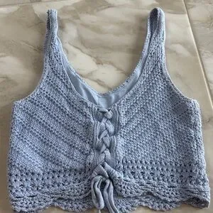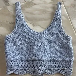 Chic knit crop top by Hollister. Light blue shade. Ideal for casual outings.