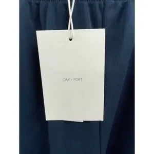 The NWT OAK + FORT High Waist Sweat Short in Men's XS is a stylish navy blue with white stripes, perfect for casual occasions. Made of 95% polyester and 5% spandex, these shorts feature a pull-on closure and elastic waist for comfort. The classic design, flat front, and logo accent make them a versatile addition to any man's wardrobe. Made in Vietnam, these sweat shorts offer a regular fit for a timeless look.