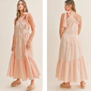*NWT* MABLE Brittany One Shoulder Tiered Maxi Dress, Size S. COLOR: Peach. 100% cotton shell, 100% polyester lined. Hand Wash.