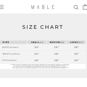 MABLE Size Chart in photos