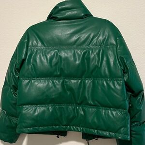 Down-filled faux leather puffer. Clean, modern silhouette. Brand new without tags.