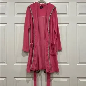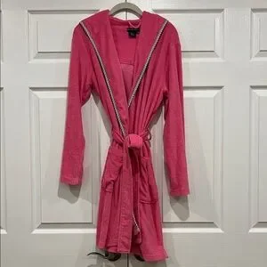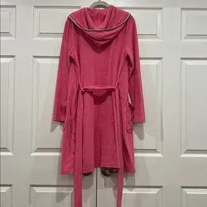 RALPH LAUREN Terry Cloth Bathrobe Hot Pink Green Gingham Womens Size XS Small