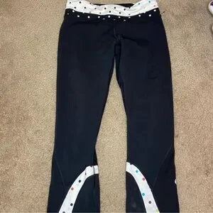 🌊RARE Lululemon Sea Wheeze Run: Inspire Crop II black/ Polka Dot Waistband