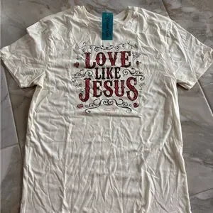 Embrace positivity with the 'Love Like Jesus' graphic tee. This cream short sleeve top offers comfort and inspiration for your everyday look.