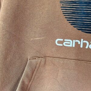 Carhartt boys tan hooded sweatshirt big logo size small 8/10