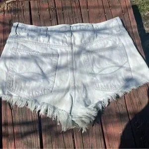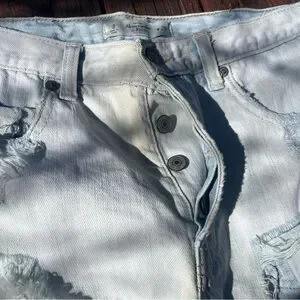 Stylish distressed denim shorts perfect for casual outings. Features a frayed hem for a trendy look.