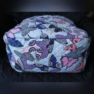 Colorful Quilted Blue Vera Bradley Butterfly Campus Backpack. Features multiple compartments for easy organization including a laptop pouch in the back. Used, but is i very good condition.
