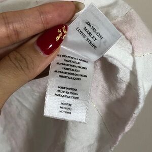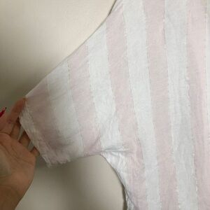 Rails Marley Lotus pink and white striped with gold thread short-sleeve button shirt with a relaxed fit. Lightweight, breathable fabric ideal for warm weather. Front tie detail adds a casual, stylish touch.