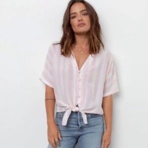 Rails Pink & White Striped Tie-Front Button Shirt