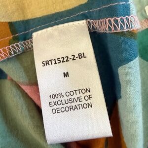THML Abstract Geometric Flutter Sleeve Smocked Top Pom Pom Trim SRT1522-2-BL Medium