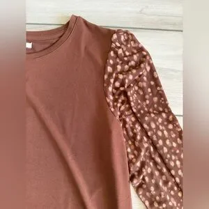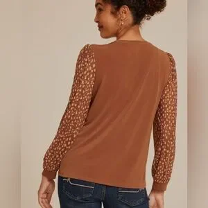 Maurices Printed Mesh Puff Sleeves Top Brown Large NWT