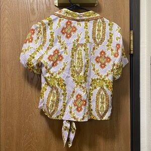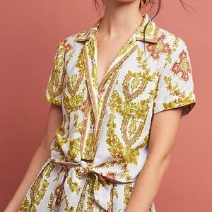 Anthropologie Echarpe Paisley Tie-Front Top Yellow Floral Accents 4