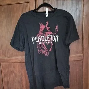 Pendleton short-sleeve crewneck tee. Black fabric with a red rodeo rider graphic and Pendleton lettering. Casual cotton tee with bold western-inspired front print.