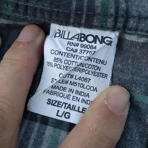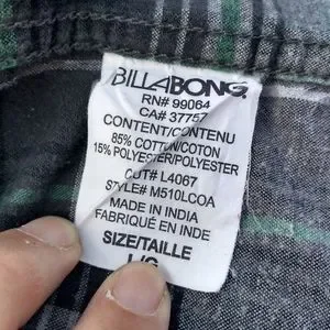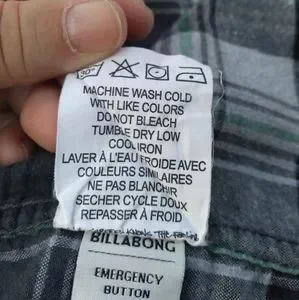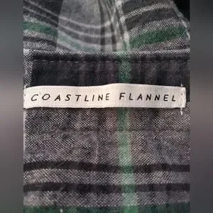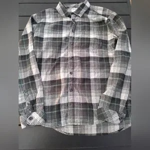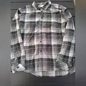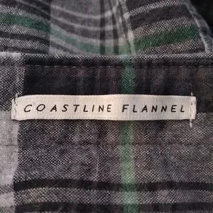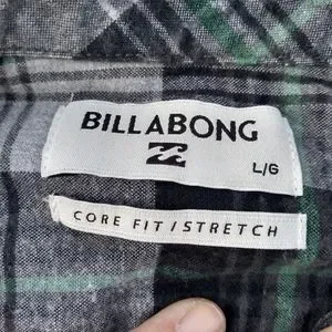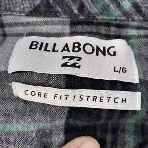 The famous Coastline Flannel Billabong button up shirt. Size Large. This is a plaid of greys, blues, and greens. Nice flannel. Core fit / Stretch. Excellent condition.