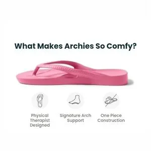 Archies Arch Support Flip Flops, a podiatrist-designed sandal known for providing orthotic-level support in a classic flip-flop style.