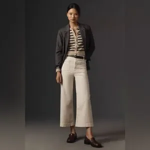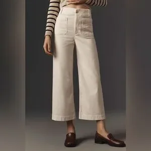 Anthropologie NWT Colette Cropped Wide-Leg corduroy size 23 in the color ivory