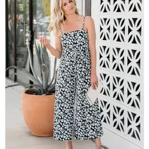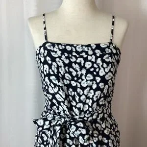 Banana Republic Wide Leg Cropped Jumpsuit Women’s 6 Navy Blue White Square Neckl
