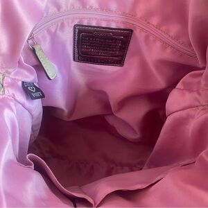 Gold lovers alert! Gold leather and gold stitching an extremely stylish Coach bag. Very roomy to carry as much or as little as you need. Never used no wear inside or outside crossbody/shoulder strap very tiny wear on hardware end maybe and strap edges tiny bit when packed see photos. Pink satin liner pristine, 2 slip pockets 1 inside zip pocket. Convenient outside zip pocket. They call it Tote but handle drop is low 6 1/2 ish inches depending on contents so almost satchel. Shoulder strap could be crossbody (40 inch total so 20 inch crossbody) but realistically it’s comfortable shoulder. Model 16291 see photo.