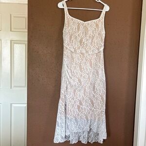 Soly Hux Women White Floral Lace Midi Dress Nude Lining Ruffle Hem Size L