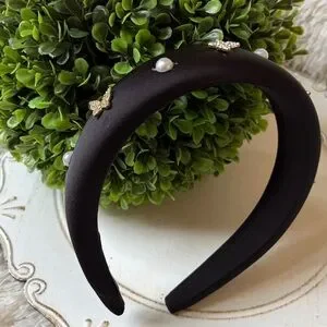 1- Black padded headband with gold butterfly studs and faux pearls.
