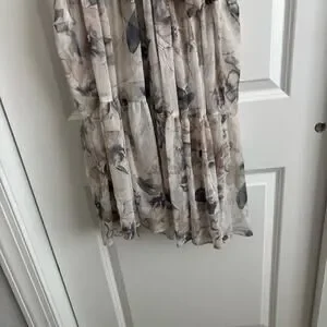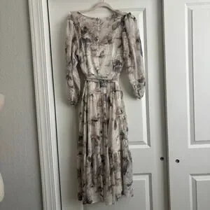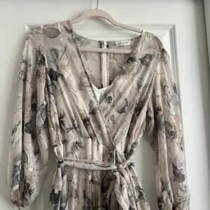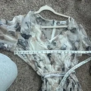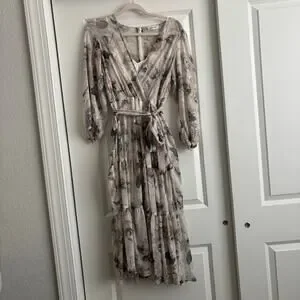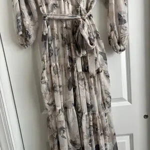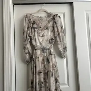 Calvin Klein Floral Chiffon Maxi Dress Size 8 Faux Wrap Long Sleeve Tiered V-Neck