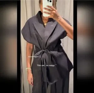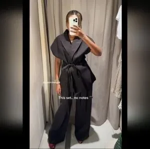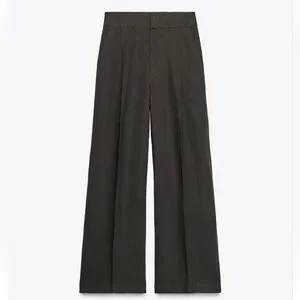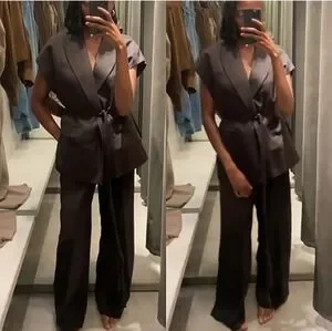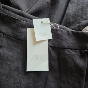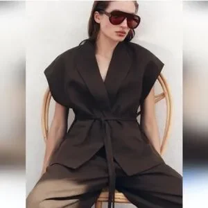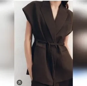 Zara Set 2 Pc Linen Blend Waistcoat Wrap Vest and Pants Brown Size S/M