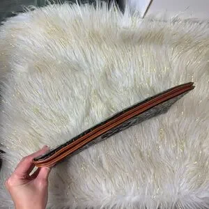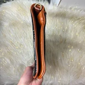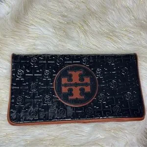 Tory Burch Black Clutch with Brown Logo Trim