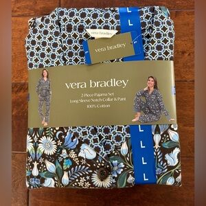❤️Vera Bradley Blue Floral 2-Piece Pajama Set 100% cotton New size L
