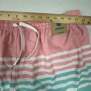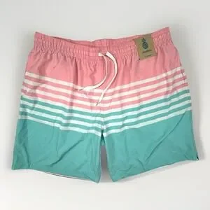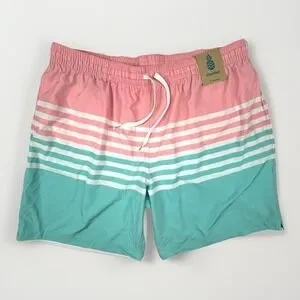 Crafted for comfort and style, Chubbies Swim Trunks in Men's XXL embody a classic beach aesthetic with a contemporary twist. These multicolored, striped shorts are designed to cater to the big and tall silhouette, ensuring a flattering fit with a drawstring closure for adjustable comfort. The polyester blend material promises durability and a quick-drying experience, perfect for various water activities like surfing or lounging by the pool.