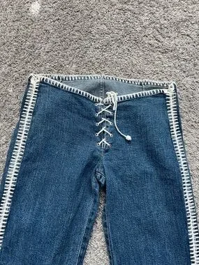 Vintage Rui Motta Women’s Brazilian Blue Lace-Up Side-Trim Flared Jeans Size 4/6