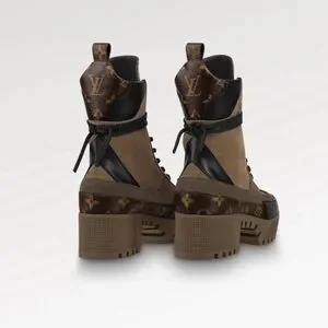 With its wrap-around leather laces, platform construction and treaded rubber outsole, the Laureate desert boot is one of Louis Vuitton's most recognizable styles. Crafted from soft suede calf leather with trim in iconic Monogram canvas, this version combines a go-anywhere spirit with true fashion appeal.