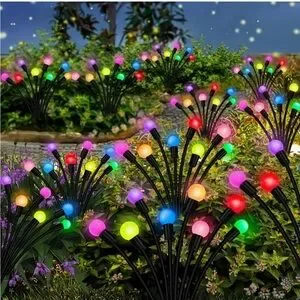 Bright multicolor LED garden stake lights for festive outdoor décor. Creates colorful accent lighting with red, blue, green, pink, purple, yellow and more. Easy to install and ideal for parties and pathways. Durable design adds eye-catching glow to your landscaping.