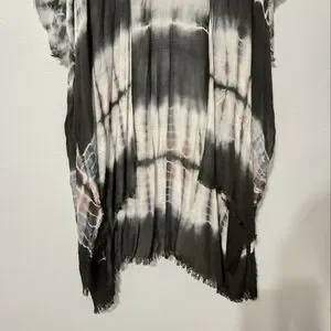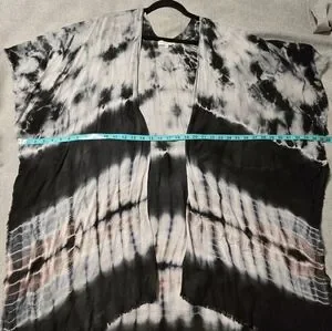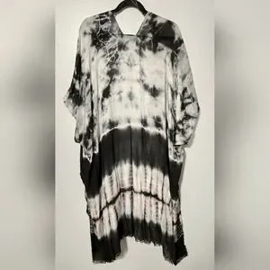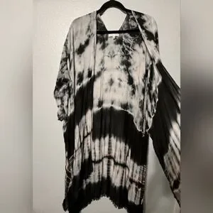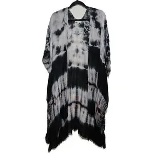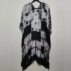 WOVEN HEART Black White Tie-Dye Kimono Beach Cover Up Raw Hem One Size